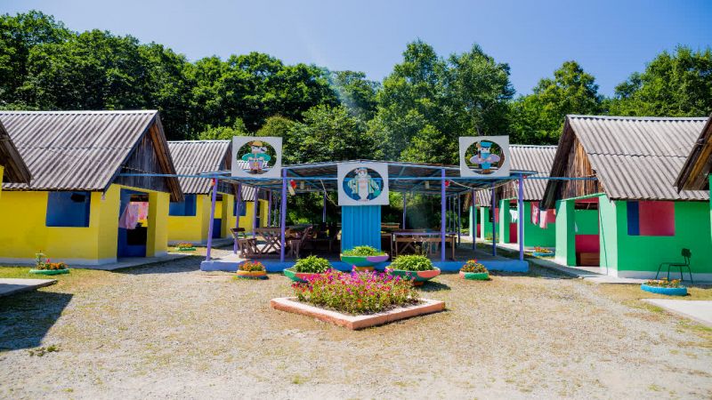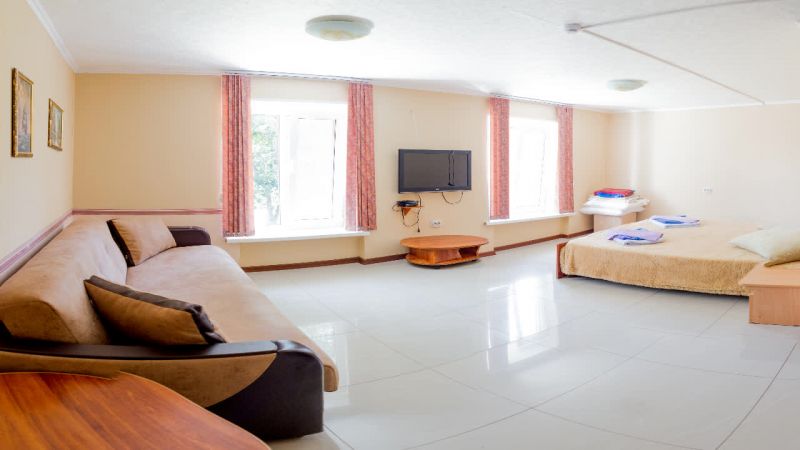Турбаза, расположенная в 700 метрах от моря, включает в себя пять корпусов в три и два этажа, 23 отдельно стоящих бетонных домика и одноэтажные 2-комнатные коттеджи. В распоряжении отдыхающих номера разных категорий: есть как бюджетные варианты с общим душем, так и номера с персональной ванной комнаты. В номерах установлены холодильник, телевизор, доступен беспроводной интернет, в некоторых комнатах имеется кондиционер.