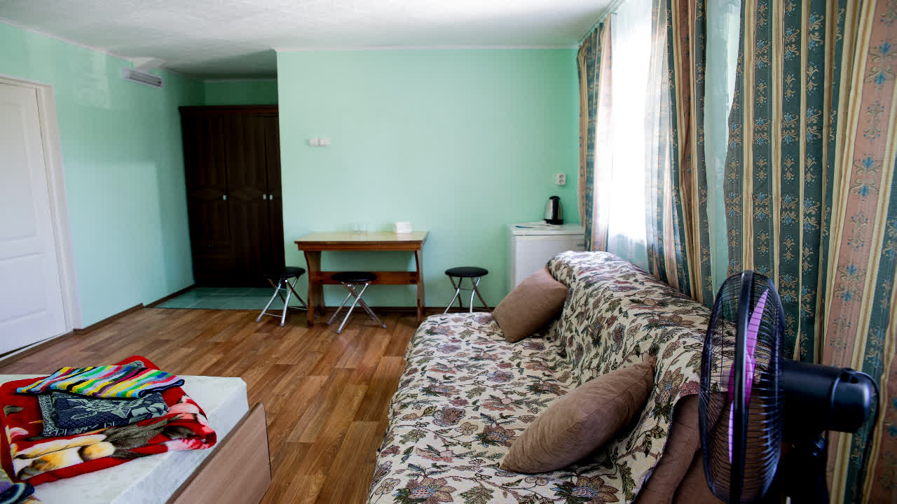 | Улучшенный 3-местный 1 (корп.1,2) | 10-12 кв.м. | 3 чел. | Мебель (вешалка, кровати односпальные, прикроватные тумбочки), Оборудование (вентилятор, телевизор,... | |